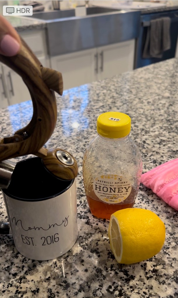 I have a great Tea pot that warms up my water and I prefer local honey but when we run out I like Costco honey. My favorite honey by far has been sugar bee honey from Japan.