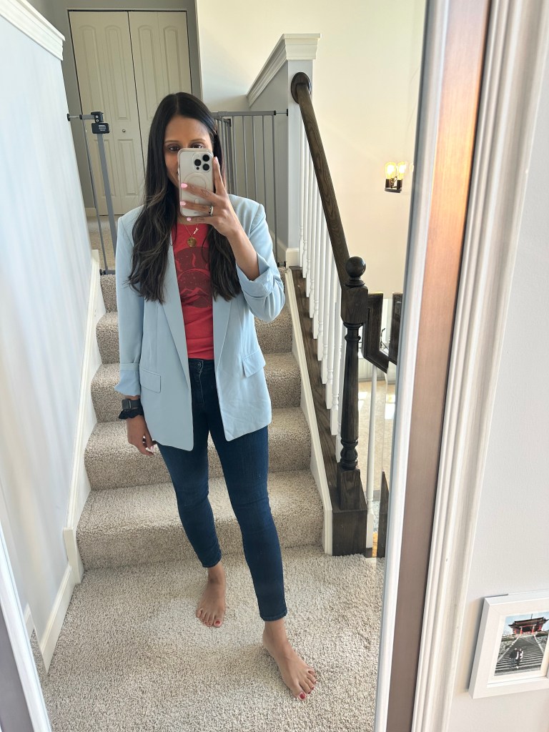 Everywhere you go it’s hot outside and freezing like the arctic inside because of the AC, so a blazer is necessary!