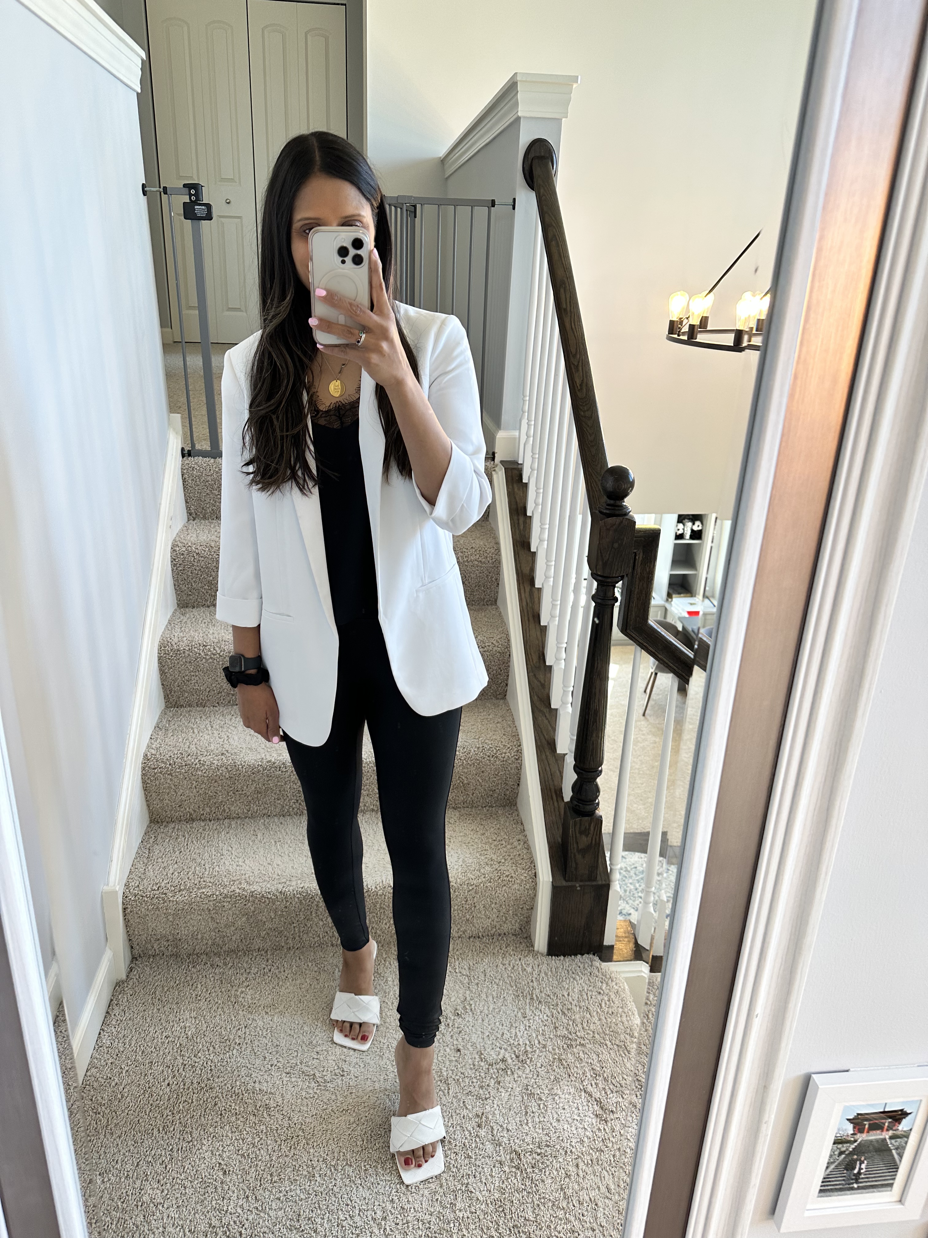 I have the original faux leather leggings, the Moto pair, the athletic pair you name it, The fit is amazing and adding a blazer to any top you wear under it gives it that complete look, add a heel or boots and this look is made for any occasion.