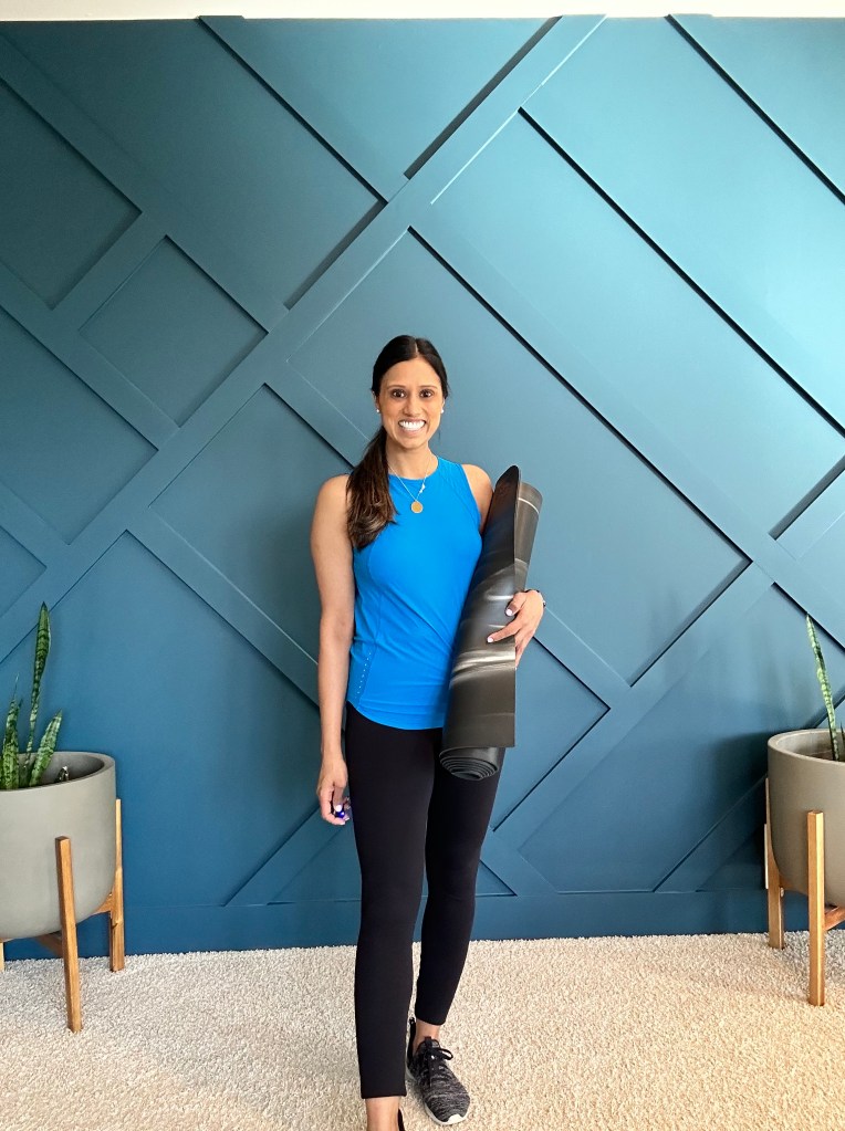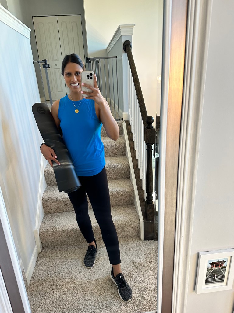 I do a sculpt yoga class 3-4 times a week at my local yoga studio so naturally I had to look the part and found this tank on the web site, I now own 8 different colors of it and its the best fit, never do I have to pull it down or up while I am working out and it goes with everything especially the align leggings 🙂 I have had my share of random yoga mats in the past years so almost 2 years ago I purchased this yoga mat and its been the best. It never smells, its so thick that it feels so soft when I use it and gives me the support I need to complete my workouts!