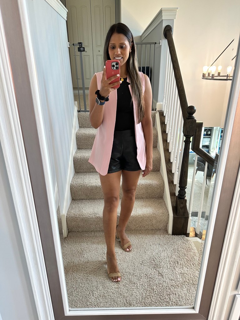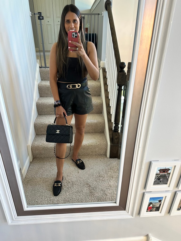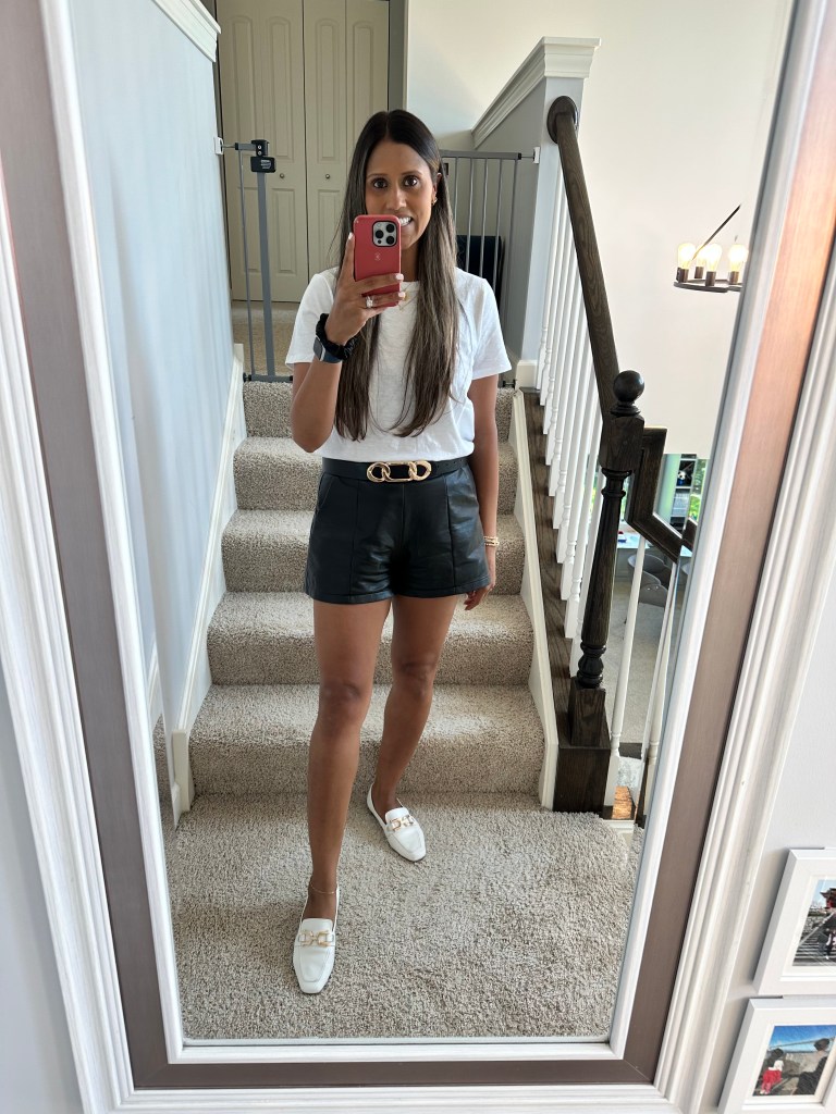 I grabbed these Faux leather shorts from Amazon 2 years ago and they have been by far my favorite purchase. They are so comfortable and legit look good on all body types. I even wear them in the Winter with tights or when it’s cold. I have been dressing them down with my old navy t-shirts and up with a belt and designer bag. Great quality, I wash them like normal but hang them up to dry. Check out all these Fits in my LTK shop.