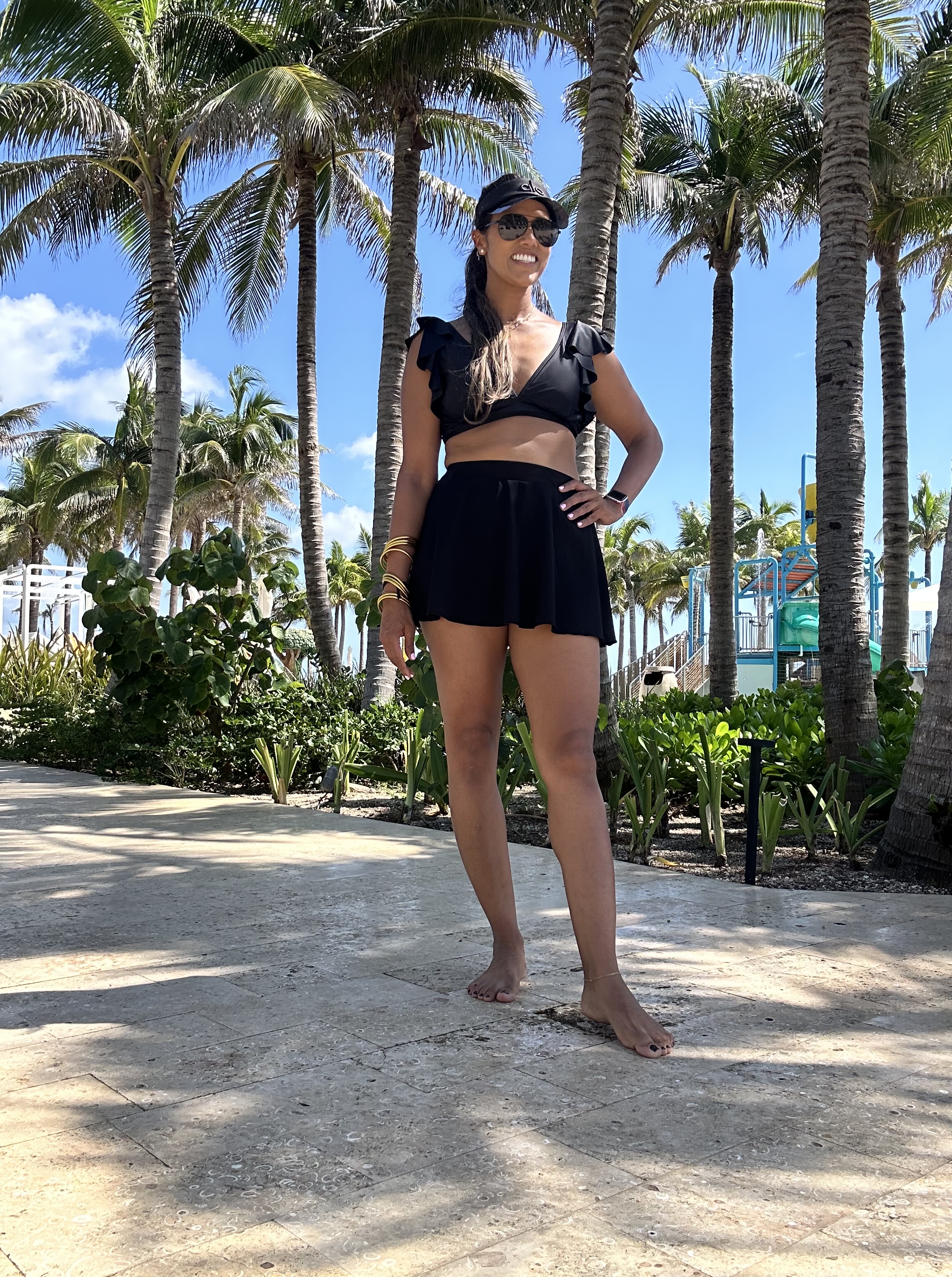 Once I discovered that my all time favorite brand for good quality leggings and faux leather pants makes a swim line, it was all down hill from there. I found this amazing swim skort that is legit flattering on everybody! I don’t like my butt to hang out and these are perfect, I have tried dupes of swim skorts, shorts you name it from everywhere. These are quite a splurge but so worth it. They dry so quickly too and can easily be worn to breakfast, lunch when you are staying in a hotel. I have 3 pairs of them. I also discovered the rash guards and grabbed 3 colors and am obsessed with them when I want to protect my skin (as we all should) from the harsh sun in Mexico and most recently on our trip to Bora Bora!